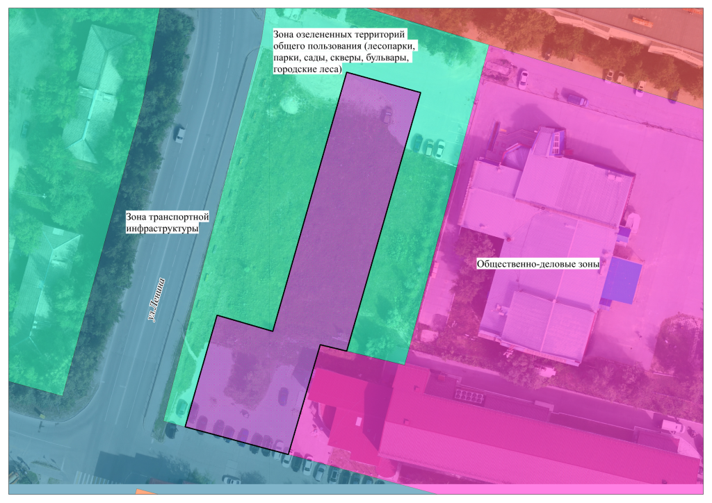 1) Заменить часть зоны озелененных территорий общего пользования (лесопарки, парки, сады, скверы, бульвары, городские леса) на зону общественно-делового назначения, применительно к территории в районе здания культурно-досугового комплекса «Калейдоскоп» в 11 микрорайоне города Мегиона.